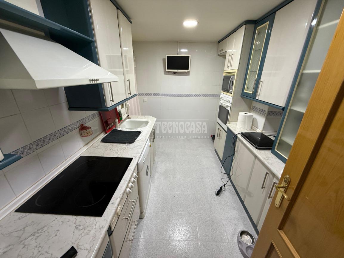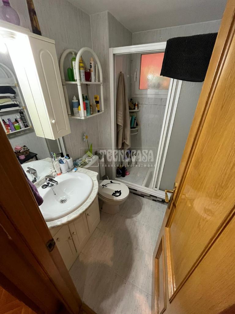Este piso cuenta con tres cómodos dormitorios y dos baños, uno completo con ducha y otro con bañera en la habitación principal. Además, dispone de armarios empotrados que optimizan el almacenamiento. La finca cuenta con ascensor.